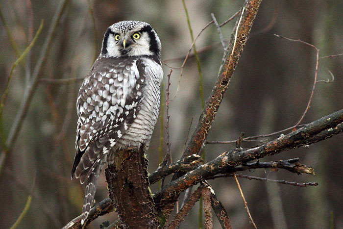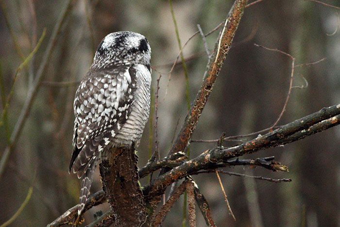 Hiiripöllö golfkentän reunassa Munapuolenahteella. Iidesjärven laakso, Tampere.Kuvat: Olavi Autio. Copyright © Olavi Autio. (8.11.2017)