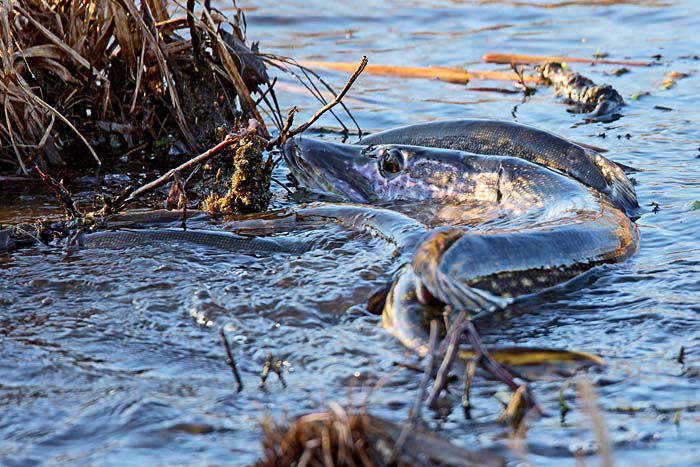 | Hauki    Hauki kutee. Iidesjärvi, Tampere.   Hauet kevätkudulla järven länsipäässä. Iidesjärvi, Tampere.   Hauki hyppää rantakaislikon tuntumassa Hevoshaan länsipuolella. Uivelo katselee. Samaan aikaan lähistöllä sukelteli pikku-uikku, jota hauki saattoi tavoitella. Tai ehkä hauki pakeni vielä isompaa haukea. Iidesjärvi, Tampere. Kuva: Olavi Autio. Copyright © Olavi Autio. (16.10.2013) |