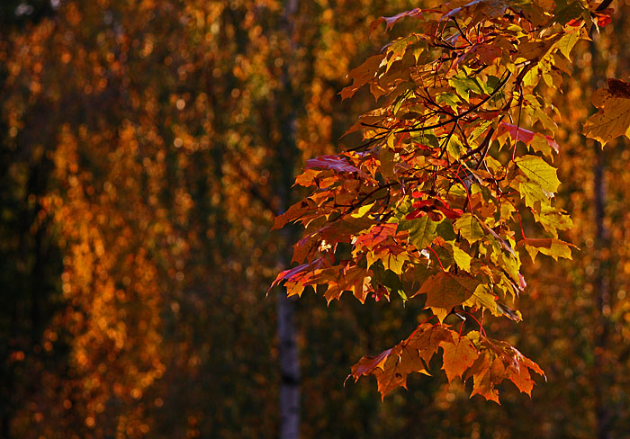 Vaahtera hehkuu ruskan väreissä Palvaanniemessä. Iidesjärvi, Tampere. Kuva: Olavi Autio. Copyright © Olavi Autio. (2011)