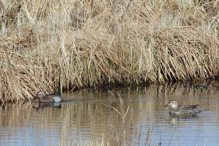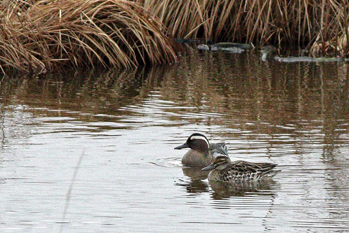 Heinätavipari lintutornin edustalla. Iidesjärvi, Tampere. Kuva: Olavi Autio. Copyright © Olavi Autio. (27.4.2014)