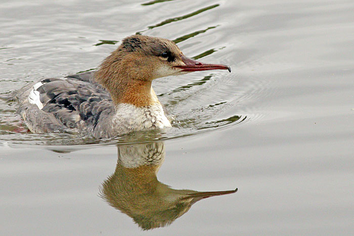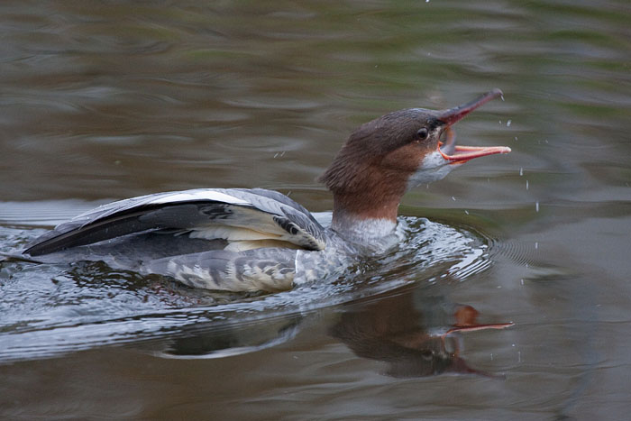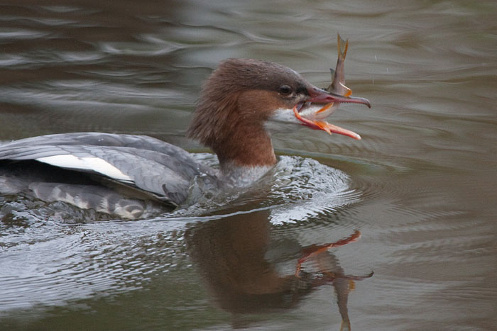 Isokoskelo hotkaisee kalan järven länsipäässä. Iidesjärvi, Tampere. Kuva: Pekka Turunen. Copyright © Pekka Turunen. (27.9.2012)