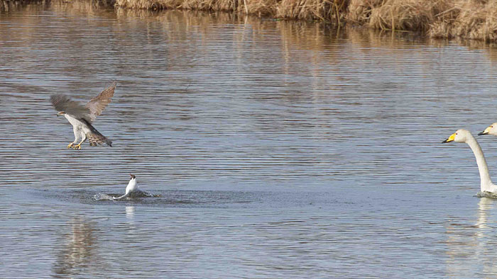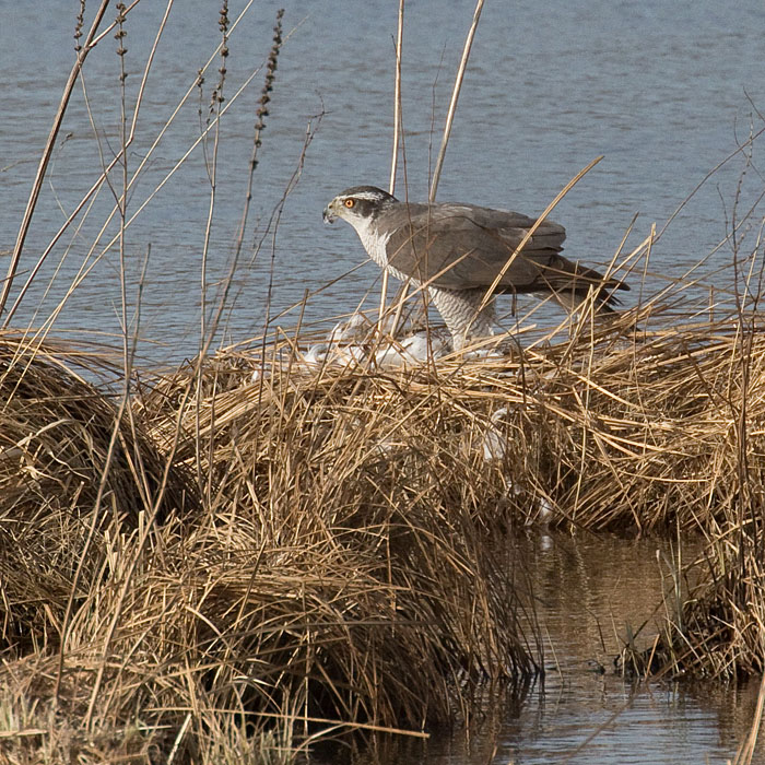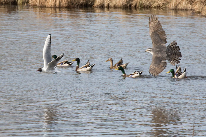 Kanahaukka saalistaa naurulokin. Iidesjärvi, Tampere. Kuvat: Juha Mettälä. Copyright © Juha Mettälä. (11.4.2015)