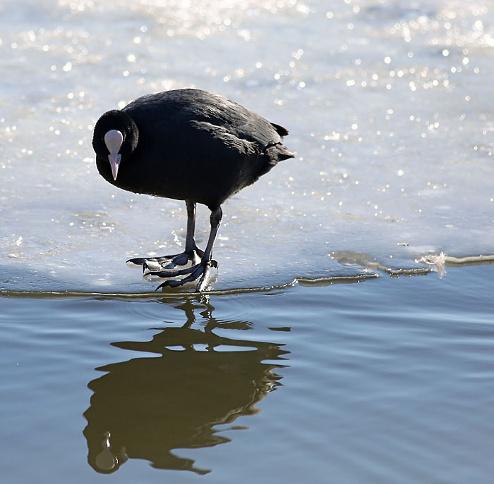 Nokikana peilailee Viinikanojalla. Iidesjärvi, Tampere.