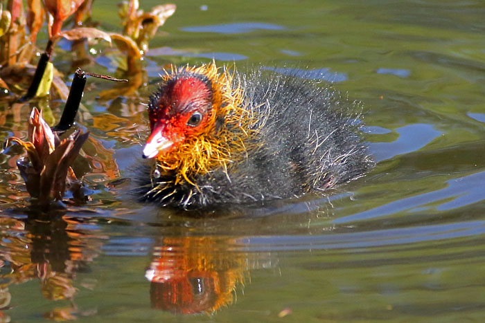 Nokikanan poikanen järven länsipäässä. Iidesjärvi, Tampere.