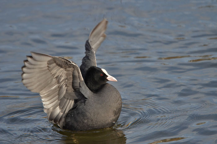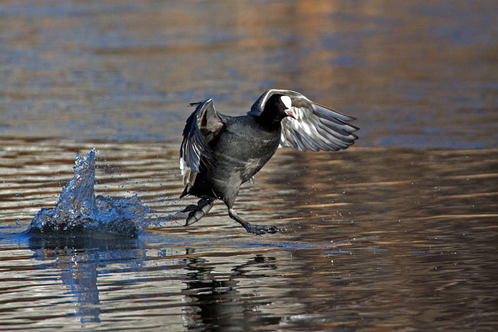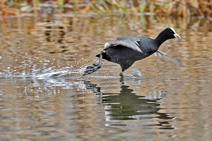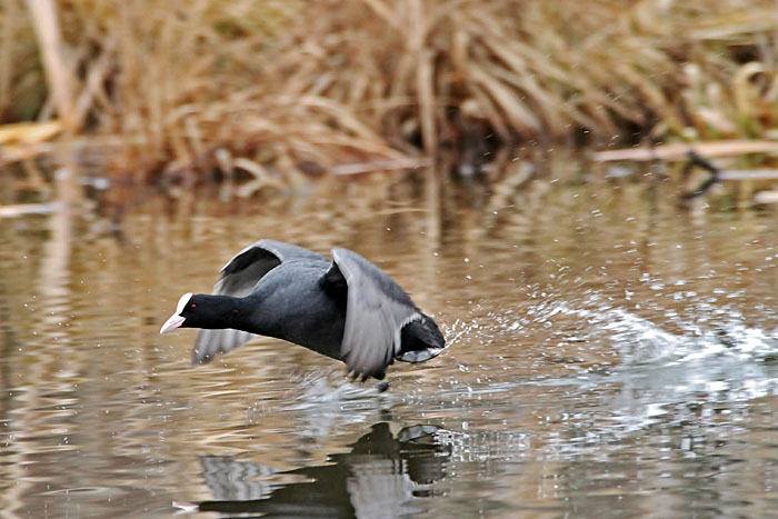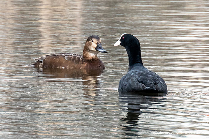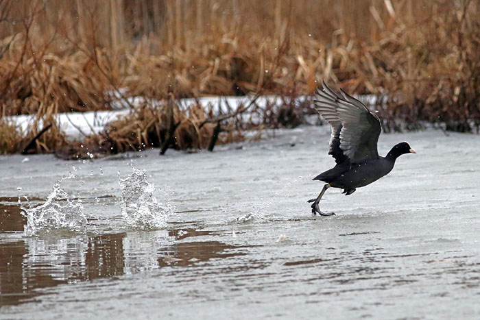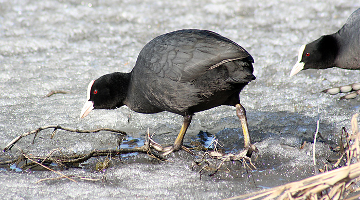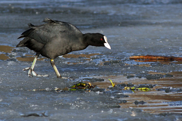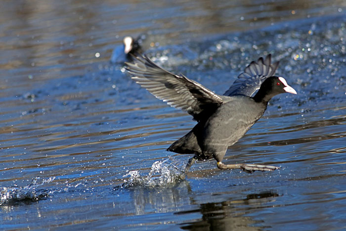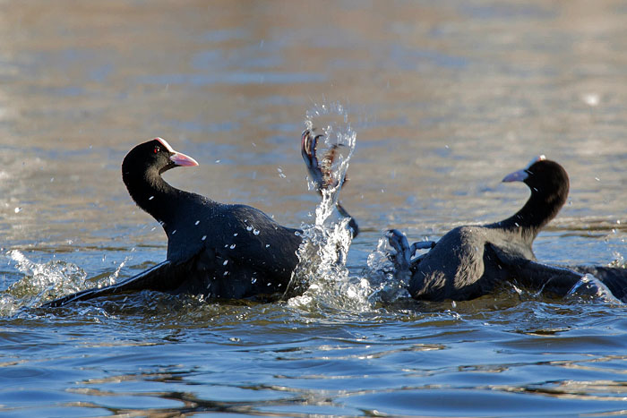 Nokikana häätää punasotkan järven länsipäässä. Iidesjärvi, Tampere.