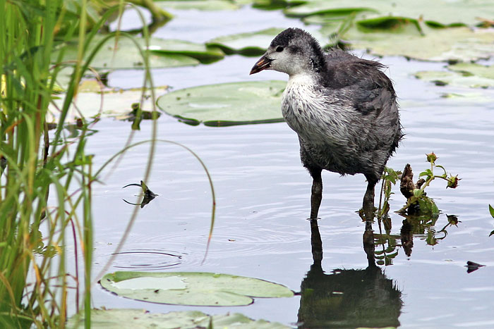 Nokikanan poikanen järven länsipäässä. Iidesjärvi, Tampere. Kuva: Olavi Autio. Copyright © Olavi Autio. (14.7.2013)