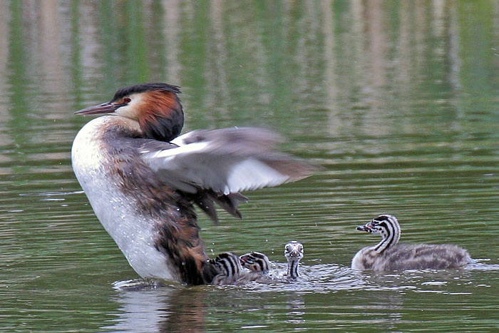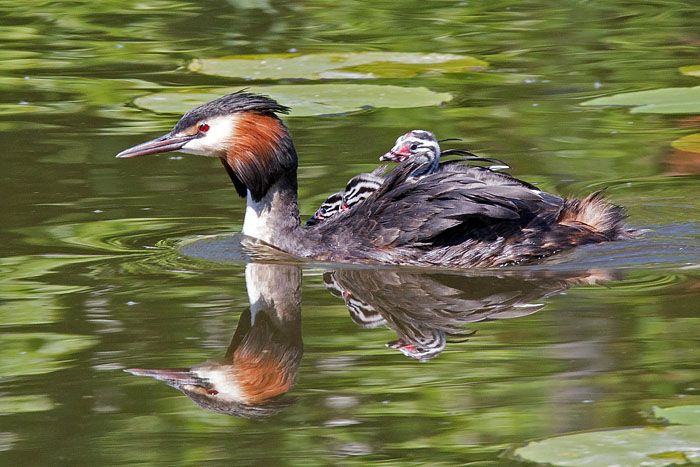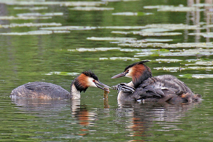 Silkkiuikku ja poikanen. Iidesjärvi, Tampere. Kuva: Olavi Autio. Copyright © Olavi Autio. (10.6.2011)