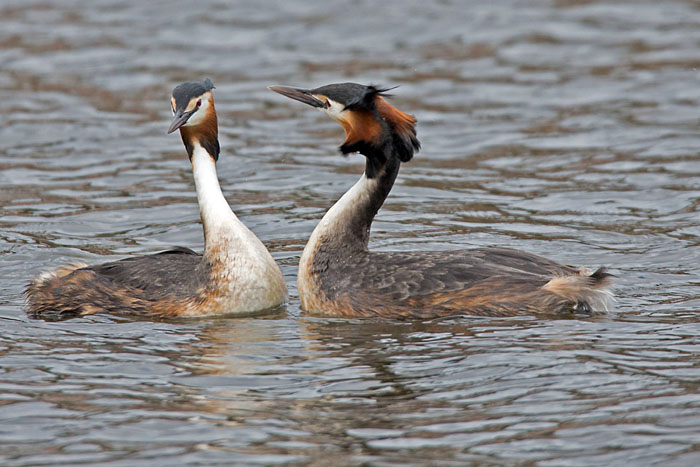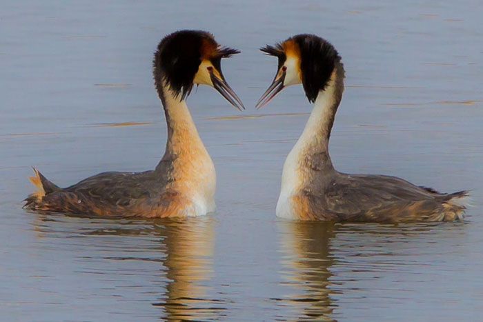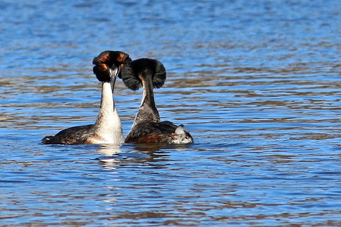 Parittelevat silkkiuikut. Iidesjärvi, Tampere. Kuva: Kari Jussila. Copyright © Kari Jussila. (17.4.2016)