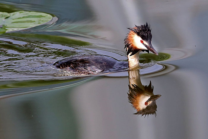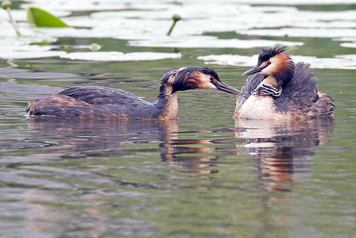 Silkkiuikku ja kuvajainen. Iidesjärvi, Tampere. Kuva: Jorma Autio. Copyright © Jorma Autio. (16.6.2017)