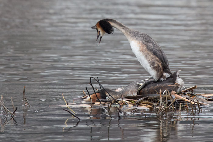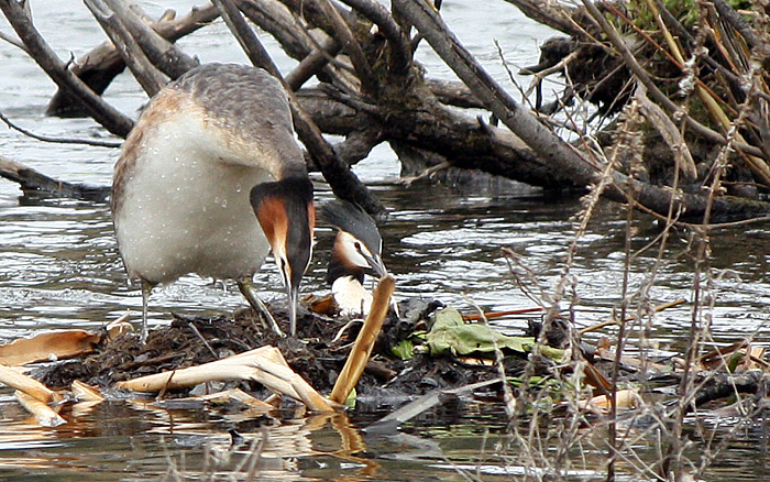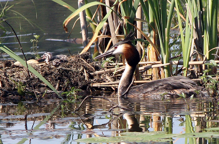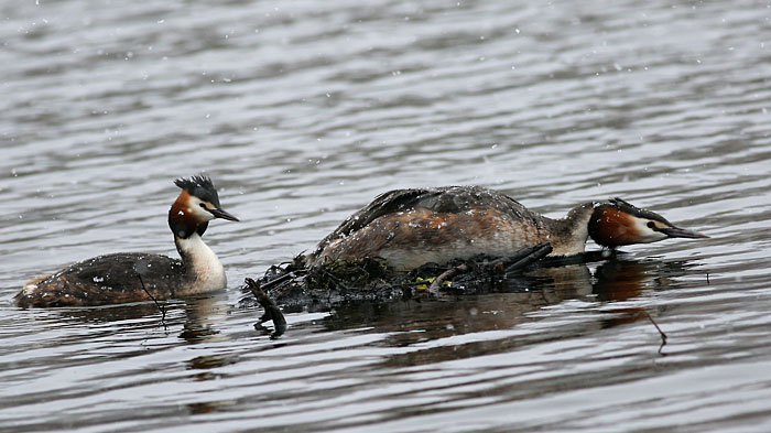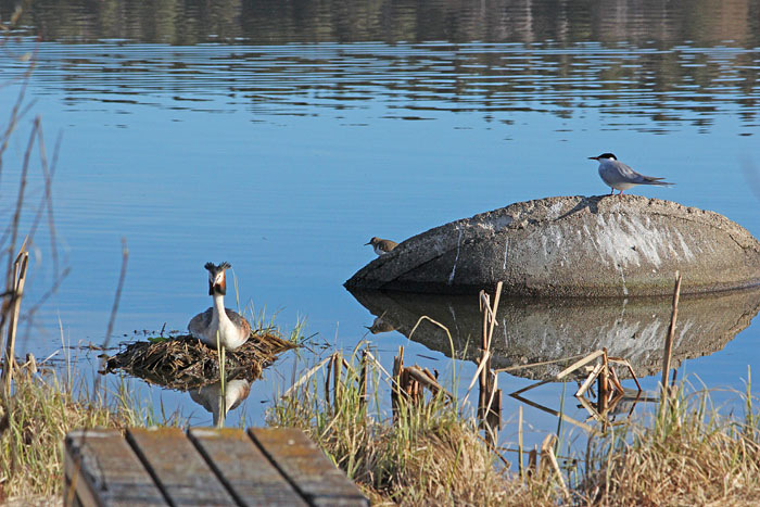 Silkkiuikkut pesällä. Iidesjärvi, Tampere. Kuva: Olavi Autio. Copyright © Olavi Autio. (4.5.2011)