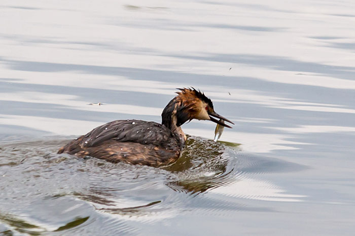 Silkkiuikun poikanen ruokailee. Iidesjärvi, Tampere. Kuva: Kari Jussila. Copyright © Kari Jussila. (29.5.2016)