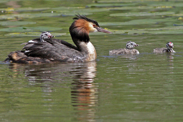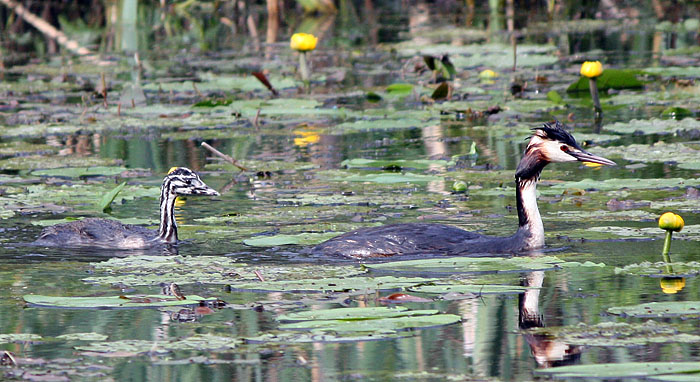 Silkkiuikku ja poikanen. Iidesjärvi, Tampere. Kuva: Olavi Autio. Copyright © Olavi Autio. (2.7.2011)
