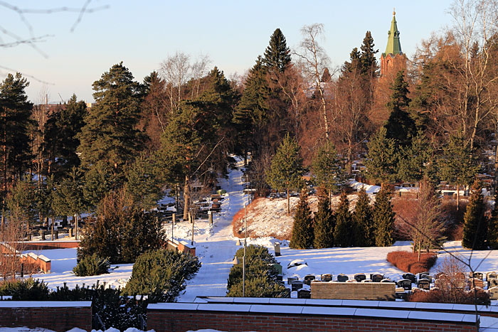 Messukylän hautausmaa Aakkulanharjulta kuvattuna. Iidesjärven laakso, Tampere.