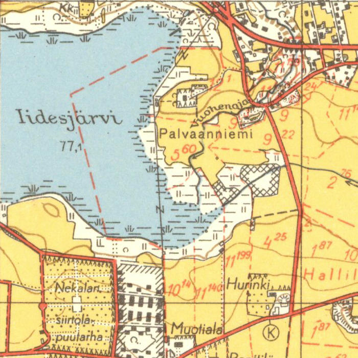 Yhdyskuntalautakunta käsittelee osayleiskaavaa 17. joulukuuta(Iides.fi 15.12.2013) Iidesjärven osayleiskaavaehdotus on esillä yhdyskuntalautakunnassa tiistaina 17. joulukuuta. Yleiskaavapäällikkö Pia Hastio esittää lautakunnalle, että lautakunta hyväksyy osayleiskaavaehdotuksen ja lähettää sen kaupunginhallituksen ja kaupunginvaltuuston hyväksyttäväksi. Osayleiskaavaehdotus valmistui marraskuussa 2012 ja oli nähtävillä saman vuoden marras-joulukuussa. Kaavaehdotuksesta tehtiin 11 muistutusta ja siitä annettiin viisi lausuntoa. Muistutusten ja lausuntojen vuoksi ehdotusta tarkistettiin. Esimerkiksi Nekalantien reunaan suunniteltu uusi kevyen liikenteen reitti on muutettu polkuvaraukseksi. Vanhat peruskartat kertovat järven itäpään muutoksesta(Iides.fi 11.12.2013) Maanmittauslaitoksen julkistamat vanhat peruskartat kertovat Iidesjärven alueenkin muutoksista. Ohessa peruskarttalehdiltä (1:20000) rajatut karttakuvat järven itäpäästä vuosilta 1953, 1980 ja 1991. Peruskartat on julkaistu jpg-tiedostoina yleiseen käyttöön. Kartat löytyvät verkko-osoitteesta http://vanhatpainetutkartat.maanmittauslaitos.fi. Karttojen käyttöehdot ja lisenssitiedot on julkaistu Maanmittauslaitoksen verkkosivulla.   Vuoden 1953 peruskartassa Iidesjärven itäpää on vielä maatalousaluetta. Palvaanniemen kautta kulkee sähkölinja. Puhoonlahden pohjukassa on kookas laituri. Palvaanniemessä on yksi talo.   Vuonna 1980 Hervannan valtaväylä liittymineen on rakennettu. Palvaanniemen rakentaminen on alkanut. Laituria ei näy Puhoonlahden pohjukassa.   Vuoden 1991 kartassa Palvaanniemessä on asuinalue. Nekalantien jatke leikkaa pellot. Sähkölinja kulkee Huringin pellon kautta. Järvi sai jääkannen(Iides.fi 26.11.2013) Iidesjärvi jäätyi tiistain 26. marraskuuta vastaisena yönä kokonaan. Syksyn aikana järven vesi oli jäähtynyt, ja parin päivän mittainen pakkasjakso riitti synnyttämään yhtenäisen jääpeitteen. Vesilintujen oli lähdettävä järveltä etsimään sulaa vettä. Vielä sunnuntaina Hevoshaan rannassa sukelteli allikin.   Kirkas teräsjää heijastaa taivaan sineä. Kuva on otettu järven etelärannalta viljelyspalstojen läheltä. Kuva: Olavi Autio. Copyright © Olavi Autio. (26.11.2013) Takiaiset saivat jäädä - tikli kiittää(Iides.fi 23.11.2013) Tänä syksynä viikate niitti Iidesrannan kevyen liikenteen väylän piennarta aiempia vuosia lempeämmin ja pientareelle jäi runsaasti takiaisia tiklien iloksi. Tiklit kiittävät tuottamalla luontoelämyksiä kevytväylän kulkijoille. Lauantaina 23. marraskuuta pientareen takiaisissa ruokaili puolen päivän aikaan parikymmentä tikliä.   Tikli takiaisessa on marraskuisen päivän väriläikkä. Kuva: Olavi Autio. Copyright © Olavi Autio. (23.11.2013) Martti Tuuren Iidesjärvi-kuvat esillä Hervannassa(Iides.fi 12.11.2013) Martti Tuuren valokuvanäyttely "Kohtaamisia Iidesjärvellä" on esillä Hervannan kirjastossa 23. marraskuuta saakka. Aiemmin valokuvat ovat olleet nähtävillä Messukylän, Sampolan, Nekalan ja Tesoman kirjastoissa. Näyttelyssä on luontovalokuvia vuosilta 2010-2012: nisäkkäitä, lintuja ja hyönteisiä.   Martti Tuure on ottanut paljon valokuvia Iidesjärven seudun hyönteisistä. Tässä angervohopeatäplä vuodelta 2011. (Kuva: Martti Tuure. Copyright © Martti Tuure.) Luonto valmistautuu talveen(Iides.fi 15.10.2013) Luonnon valmistautuminen talven tuloon näkyy Iidesjärven rannoilla. Puut siirtävät lehtivihreän talveksi varastoon ja pukeutuvat ruskan väreihin. Järvelle pysähtyy pohjoisesta saapuvia vesilintuja levähtämään ja ruokailemaan. Esimerkiksi uiveloita on näkynyt paljon. Lokakuun puoliväli on hyvä aika ruskaretkelle. Poutasäällä retki kannattaa ajoittaa varhaiseen aamuun tai auringonlaskun aikaan, jolloin ruskan värit ovat voimakkaat.   Auringonnousu Hevoshaassa. Pakkasyön jälkeen rantakaislikko on kuurassa ja vesi huuruaa. Kuva on otettu 14. lokakuuta. (Kuva: Olavi Autio. Copyright © Olavi Autio.)   Laskevan auringon valo korostaa ruskan värejä pohjoisrannan koivikossa. Kuva on otettu etelärannalta 14. lokakuuta. (Kuva: Olavi Autio. Copyright © Olavi Autio.) Sorsat kalastavat, kalat lentävät(Iides.fi 12.10.2013) Vanha sanonta väittää, että Iidesjärven lintutornilla on Suomen huonoimmat havainnot mutta parhaat jutut. Lintutornilla tehdyt tuoreet havainnot kalastavista sorsista ja lentävistä kaloista todistavat, että tornilla myös havainnot ovat hyviä. Tornin etumaastossa sijaitsevan lammikon sinisorsat ovat tänä syksynä oppineet kalastamaan lammikon pikkukaloja. Ne jahtaavat pieniä särkikaloja ja saavat ne pakenemaan parvena lammikon reunalta toiselle. Paniikissa kalat hyppivät ilmaan, jolloin niiden kyljet kiiltävät komeasti. Pitkän matkan liitoon särkien evät eivät kuitenkaan riitä. Välillä sorsat näyttävät yrittävän jonkinlaista yhteispyyntiäkin. Siitä ei kuitenkaan tahdo tulla mitään, sillä sorsia vaivaa kalamiehen kateus. Jos kaveri tulee apajalla liian lähelle, seurauksena on nokittelua.   Kalasorsa ahdistelee kalaparvea. Taustalla lentokala, joka taitaa olla särki. Kuva on otettu 11. lokakuuta. (Kuva: Olavi Autio. Copyright © Olavi Autio.) Isokoskelot koolla(Iides.fi 5.10.2013) Isokoskelot ovat jokasyksyiseen tapaan taas koolla Iidesjärvellä. Järven selällä voi nähdä jopa kymmenien isokoskeloiden parvia. Muuttoaikana isokoskelot ovat varsin seurallisia lintuja. Ne kalastavat yhdessä, huoltavat höyhenpukua, harjoittelevat soidinmenoja ja syöksähtelevät sinne tänne. Nyt on seuranpidon ja ilakoinnin aika, mutta talvella kaikki on toisin. Muutamat sitkeät yksilöt jäävät talvehtimaan isojen jokien koskipaikkoihin. Ankarinakin pakkastalvina isokoskeloita voi tavata esimerkiksi Kymijoella. Koiraiden lohenpunaiset vatsahöyhenet loistavat, kun linnut kalastavat pakkashuuruissa. Kun pakkanen kiristyy, linnut kerääntyvät yhteen ja yrittävät pitää avantoa sulana jäätyväss