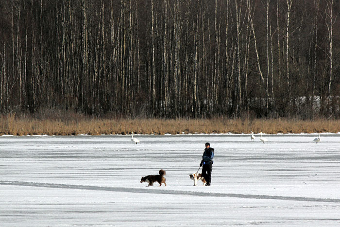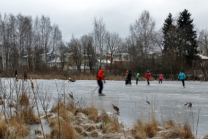 | Ajankohtaista IidesjärveltäRaitiotien rakentaminen alkaa(Iides.fi 18.12.2016) Raitiotien rakentaminen alkaa Iidesjärven itäpäässä Vuohenojalla maanantaina 19. joulukuuta. Ensin kaadetaan puut. Rakennustyöt kestävät useita vuosia. Liikenteen arvioidaan alkavan 2020-luvun alussa. Hervannan ja keskustan välinen raitiotie viiltää syvän haavan Iidesjärven laaksoon. Raiteet rakennetaan monikaistaisen Hervannan valtaväylän rinnalle tien länsipuolelle. Leventyvä liikennekäytävä estää monien luonnoneläinten kulkemisen laaksossa. Yli kymmenen metriä leveän uuden väylän alle jää muun muassa hyönteisten, kasvien ja lintujen elinympäristöjä.  Hakkuukone odotteli urakan alkamista Vuohenojalla sunnuntaina 18. joulukuuta. Kuva: Olavi Autio. Copyright © Olavi Autio. (18.12.2016) Päivän pituus alkaa kasvaa(Iides.fi 16.12.2016) Talvipäivänseisaus on keskiviikkona 21. joulukuuta. Aurinko nousee silloin kello 9.42 ja laskee kello 15.03. Päivällä on pituutta 5 tuntia ja 20 minuuttia. Talvipäivänseisauksen aikaan valo on päällä tai sammuksissa. Jos päivä on aurinkoinen ja maassa lunta, valoa on häikäisevän paljon moneksi tunniksi. Jos taivas on pilvinen ja maa musta, keskipäivälläkin on lähes pimeää. Talvipäivänseisauksen jälkeen päivän pituus alkaa kasvaa. Valoisuus lisääntyy aluksi hitaasti, mutta pian kevät pääsee talvesta voitolle. Kevätpäiväntasaus on 20. maaliskuuta. Silloin kevät on jo pitkällä.  Joulukuussa tunnelma voi olla kuin keväthangilla. Aurinko paistaa kuitenkin matalalta ja varjot ovat pitkiä. Kuva on otettu Iidesjärven länsipäästä. Taustalla Iidesrannan taloja. Kuva: Olavi Autio. Copyright © Olavi Autio. (16.12.2016) Muuttavia laulujoutsenia vierailulla(Iides.fi 25.11.2016) Sään lauhtuminen sulatti Iidesjärven jääkannen ja houkutteli ruokavieraiksi muun muassa laulujoutsenia. Perjantaina 25. marraskuuta aamupäivällä järven itäpäässä oli seitsemän laulujoutsenta: yksi pari ja yksi perhe, johon kuului emojen lisäksi kolme poikasta. Iidesjärvi jäätyi jo marraskuun alussa pilkkijän kestäväksi. Vahva jääkansi sulki veslinnuilta pääsyn järven ruokavarastoihihin. Kuun lopulla sää lauhtui ja jäät katosivat. Sahaava talven tulo on Iidesjärvelle tyypillistä. Matala järvi jäätyy helposti. Sään lauhtuessa virtaukset lisääntyvät ja järveen tulee ojista lämmintä vettä. Sopivalla tuulella jääkansi katoaa hyvin nopeasti.  Kolme laulujoutsenen poikasta ja emo lumisateessa Palvaanniemen edustalla. Kuva: Olavi Autio. Copyright © Olavi Autio. (25.11.2016) Pönttöjen taajama Iidesrannassa(Iides.fi 22.11.2016) Iidesrantaan on rakentunut tiheä linnunpönttöjen taajama. Rantapuihin on kiinnitetty toistakymmentä pönttöä vieri viereen. Ohikulkijat ovat epäilleet, että Tampereen kaupunkisuunnittelusta vastaavat virkamiehet ovat tämänkin ylitiheän rakentamisen takana. Ehkä ei sentään. Kaupunkisuunnittelijoiden tavoitteet ovat korkeammalla. Keskustan uusissa ihmispönttölöissä tehokkuusluvut ovat paljon korkeammat kuin Iidesrannassa.  Pöntöt on aseteltu melko tiheästi Iidesrannassa. Kuva: Olavi Autio. Copyright © Olavi Autio. (22.11.2016) Luonto ennakoi talven tuloa vaihtelevaan tahtiin(Iides.fi 29.10.2016) Luonto on vain kohtalaisen hyvä sään ennustaja. Linnut ja puut tietävät, että talvi on tulossa, mutta tarkkaa hetkeä ne eivät tiedä. Monet hyönteisiä syövät linnut rupesivat jo viikkoja sitten epäilemään, että ravinto voi loppua piankin. Siksi ne käänsivät hätäisesti nokan kohti etelää ja lähtivät muuttomatkalle. Mutta jotkut hyönteissyöjät viivyttelevät Iidesjärven maisemissa koleassakin kelissä. Jahkailu voi koitua kuolemaksi, jos talvi tulee äkkiä. Puiden perimässä piilevä tieto neuvoo niitä siirtämään arvokkaat raaka-aineet lehdistä runkoon ennen talvea. Tuloksen näemme ruskana ja lehtien putoamisena. Iidesjärven puilla näyttää olevan perintökalentereissaan paljon vaihtelua. Monet puut ovat jo pudottaneet lehtensä, mutta toiset pitävät lehdistään tiukasti kiinni. Vuodesta toiseen samat puut ovat aikaisessa tai myöhäisessä.  Punarinta löytää vielä syötävää kaatopaikan risukasasta. Kuva: Olavi Autio. Copyright © Olavi Autio. (29.10.2016)  Järvensivun vaahterat eivät halua pudottaa lehtiään. Kuva: Olavi Autio. Copyright © Olavi Autio. (29.10.2016) Syksyn kiireinen lintu(Iides.fi 8.10.2016) Mitä pitempi pyrstö sen lyhyempi pinna. Tähän tulokseen päätyy, kun yrittää ymmärtää Iidesjärven pyrstötiaisten liikkumista. Järven rannoilla ja ympäristössä nähdään tähän aikaan vuodesta paljon pyrstötiaisia. Oikeasti alueella saattaa kuitenkin kierrellä vain yksi parvi. Kun parven tapaa ja yrittää seurata sitä maastossa, huomaa, että pyrstötiaisten vauhdissa ei juoksemalla pysy mukana. Yksi parvi ennättääkin parissa päivässä käydä joka talon pihalla ja tutkia kaikki puut. Jostain syystä tällä linnulla on tavattoman lyhyt pinna, etenkin parvissa. Pyrstötiainen näykkäisee puun kolosta yhden hyönteisen ja säntää saman tien seuraavaan puuhun. Ja koko parvi perässä. Kaiken aikaa pyrstötiaiset keskustelevat keskenään hyvin korkeilla äänillä. Ehkä niillä on menossa jokin kilpailu. Mutta lintu on kaunis ja parven tuottama äänimaailma hieno. Pihoilla kannattaa olla silmä ja korva tarkkana. Vierailevat tähdet ilmestyvät kuin tyhjästä ja katoavat hetkessä.  Tämä pyrstötiainen seisahtui sekunnin murto-osaksi (valotusaika 1/1250 sek.) Järvensivulla. Kuva: Olavi Autio. Copyright © Olavi Autio. (8.10.2016) Pihlajat ovat kattaneet pöydän(Iides.fi 28.9.2016) Pihlajat ovat tuottaneet tänä vuonna runsaan marjasadon lintujen iloksi. Räkättirastaille pihlajien anti näyttää kelpaavan puoliraakanakin. Jos rastaita jää paljon talvehtimaan, tilhet ja taviokuurnat jäävät ilman talviruokaa, sillä iso rastasparvi tyhjentää pihlajan nopeasti. Pihlajaa k