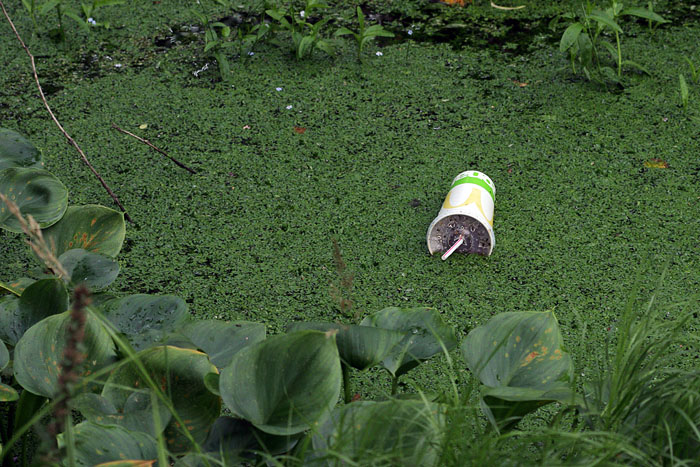 Iloitkaamme roskista(Iides.fi 27.8.2018) Iloitkaamme roskista. Roskat tuovat luontoon moninaisuutta ja uusia elämyksiä. Kuinka yksitoikkoinen Iidesjärven luonto olisikaan ilman roskia. Roskien edessä kannattaa pysähtyä. Katso tarkkaan, kuinka kevyesti kansainvälisen pikaruokaketjun tuottama McRoska kelluu Mutaojan vihreässä limassa. Siinä on asennetta. Ja tuo ihana vihreys. Sen tuottaminen on vaatinut paljon työtä. Tampereen kaupungin on pitänyt ajattaa lukuisia kuormia mätäneviä jätteitä Aakkulaan, jotta Mutaojan vesi on saatu muuttumaan syvänvihreäksi leväpuuroksi. Roskatko muka haitallisia? Vähän suhteellisuudentajua! Muutaman roskan kippaaminen luontoon on vähäinen ympäristöteko verrattuna vaikkapa raitiotien rakentamiseen! Kun roskista oppii iloitsemaan, Iidesjärven rannoilla ei koskaan tule suru puseroon. Iloitkaamme.   McRoska kelluu keveästi Mutaojan vihreydessä. Kuva: Olavi Autio. Copyright © Olavi Autio. (26.8.2018)