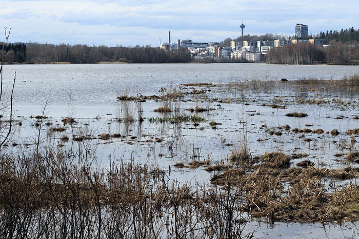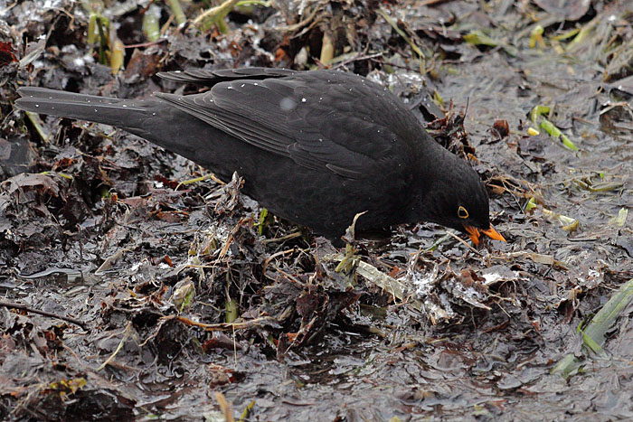 Vuotovesi-ilmiö tuo linnuille ruokaa talvella(Iides.fi 17.2.2018) Iidesjärven rantamaastot ovat täynnä vesi- ja viemäriputkia. Ne vuotavat ja muodostavat erikoisia elinympäristöjä. Valtamerillä tunnetaan vuorovesi-ilmiö, kaupunkiluonnossa on nähtävillä vuotovesi-ilmiö. Pakkasellakin höyryävissä lätäköissä vallitsee ikuinen kesä. Linnut tuntevat vuotovesikosteikot hyvin. Niistä löytyy syötävää helmikuussakin. Jätevedessä kasvanut murkina on lintujen mielestä luomuruokaa. Se maistuu paremmalta kuin ruokintapaikoilla tarjoiltava kauppojen linturuoka.   Mustarastas kauhoo lätäkön antimia järven länsipäässä. Kuva: Olavi Autio. Copyright © Olavi Autio. (17.2.2018)