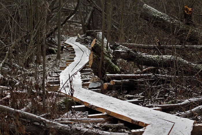Pitkospuureitti on vuoden turhake(Iides.fi 16.12.2018) Iidesjärven itäpään pitkospuureitti on rakennettu uudelleen lintutornin pysäköintipaikan ja Nekalantien alikulkutunnelin välillä. Reitti on vuoden turhake. Ilmankin olisi tultu toimeen. Pitkospuiden eteläpuolella Huringin pellon laidalla kulkee luontainen kävelyreitti, joka olisi riittänyt. Luontorakentaminen on erikoislaatuinen suomalainen rakentamisen muoto. Jos jollain paikalla paljastuu luontoarvoja, poliitikot, virkamiehet ja muut julkisen sektorin toimihenkilöt haluavat heti jättää siihen omat reviirimerkkinsä. Paikalle ryhdytään tekemään teitä, pysäköintialueita, rakennelmia, kulkuväyliä, opastustauluja, viitoituskylttejä ja pitkospuita. Kaiken tämän puuhaamisen myötä paikan luontoarvot tuhoutuvat. Paikka ei ole enää luontokohde vaan luontorakennuskohde. Iidesjärvellä on vielä siellä täällä jäljellä puustoista rantavyöhykettä, joka tarjoaa luontokappaleille suojapaikkoja ja elinympäristöjä. Tampereen kaupunki nakertaa jatkuvasti tätä rantavyöhykettä. Pitkospuureitti halkaisee Huringin pellon ja järven välisen kapean lehtomaisen kosteikon ja tuhoaa herkän alueen luontoa. Ja uutta on tulossa: Järvensivullakin on leimattu rantavyöhykkeen metsää hakkuuta varten. Mutta katsokaamme asiaa myönteisessä valossa: pitkospuilla päällystetty "luontopolku" tarjoaa oivallisen väylän hölkkääjille, maastopyöräilijöille ja koirankusettajille.   Pitkospuut joulukuussa. Kuva: Olavi Autio. Copyright © Olavi Autio. (15.12.2018)