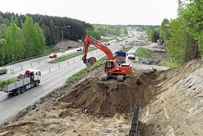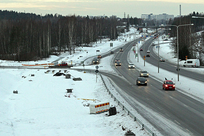 Raitiotietyömaan maisemaa Iidesjärven itäpäässä vuonna 2017. Ylempi kuva on otettu Turtolan suunnasta 31. joulukuuta. Alempi kuva on otettu Kalevan suunnasta 30. toukokuuta. Kuvat: Olavi Autio. Copyright © Olavi Autio.