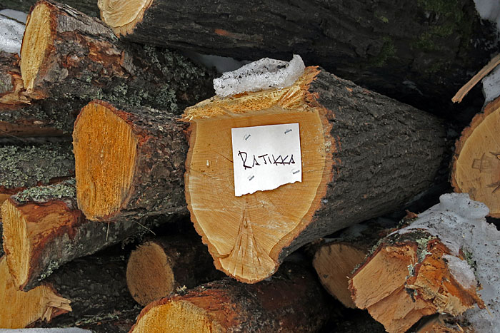 Puupinoon on kirjoitettu syyllisen nimi: RATIKKA. Kuva: Olavi Autio. Copyright © Olavi Autio. (11.3.2018)