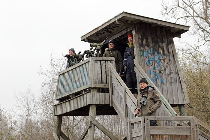 Joukkue tornilla. Alakuvassa vasemmalta Aleksanteri Mikkola, Kaisa Kivinen, Marko Ollila ja joukkueen johtaja Jarmo Lehtinen. Kuvat: Olavi Autio. Copyright © Olavi Autio. (5.5.2018)