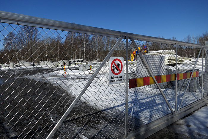 Perhepuisto on edennyt jo työmaavaiheeseen(Iides.fi 1.4.2018) Nekalantien varteen entisen Atomikylän paikalle on talven aikana noussut työmaa. Kaupunginvaltuuston hyväksymässä osayleiskaavassa tälle alueelle on osoitettu virkistysaluetta ja perhepuisto. Kaava on tullut voimaan huhtikuussa 2014 annetulla kuulutuksella, joten työmaan täytyy olla perhepuiston työmaa. Aidatun työmaa-alueen sisällä on muun muassa rakennustarvikkeita. Tästä voi vetää sen johtopäätöksen, että rakentamisleikit tulevat olemaan perhepuiston keskeinen toimintamuoto. Mitään risumajoja ei näytä olevan tulossa vaan kunnon betonirakenteita. Lähitienoolle tuodut vanhat sohvat pääsevät ilmeisesti uusiokäyttöön leikkirakennusten sisustuselementteinä. Ohikulkijat ovat kummastelleet, miksi aidatun alueen yhteen nurkkaan on kasattu suuri määrä rahaa. Raha on tietysti ratikkaleikkejä varten!   Perhepuistoon on vielä pääsy kielletty. Kuva: Olavi Autio. Copyright © Olavi Autio. (31.3.2018)